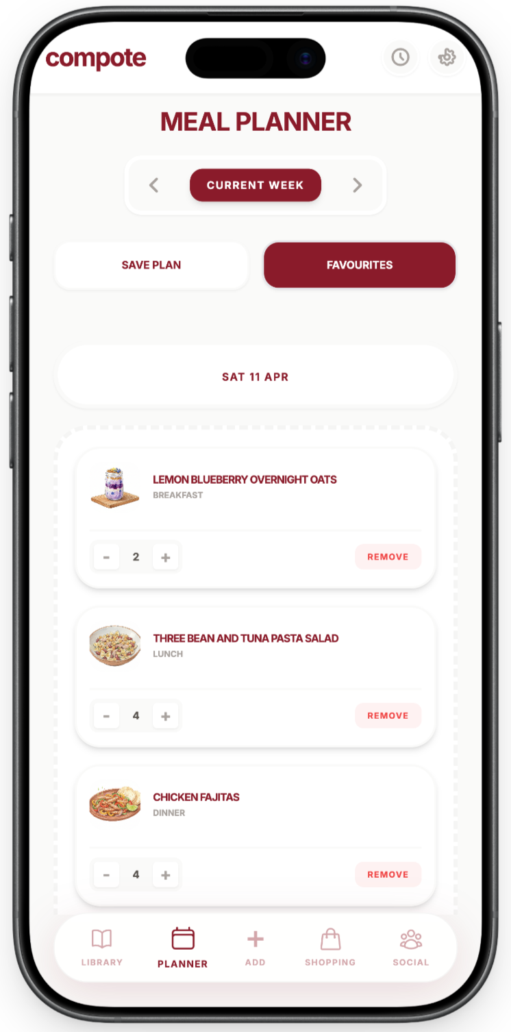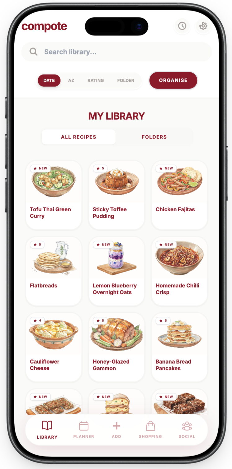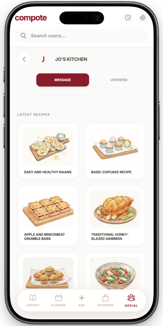 Compote is your all-in-one social kitchen. It allows you to instantly import or create recipes, plan your weekly meals, generate automatic shopping lists, and share your favourite dishes directly with friends and family.